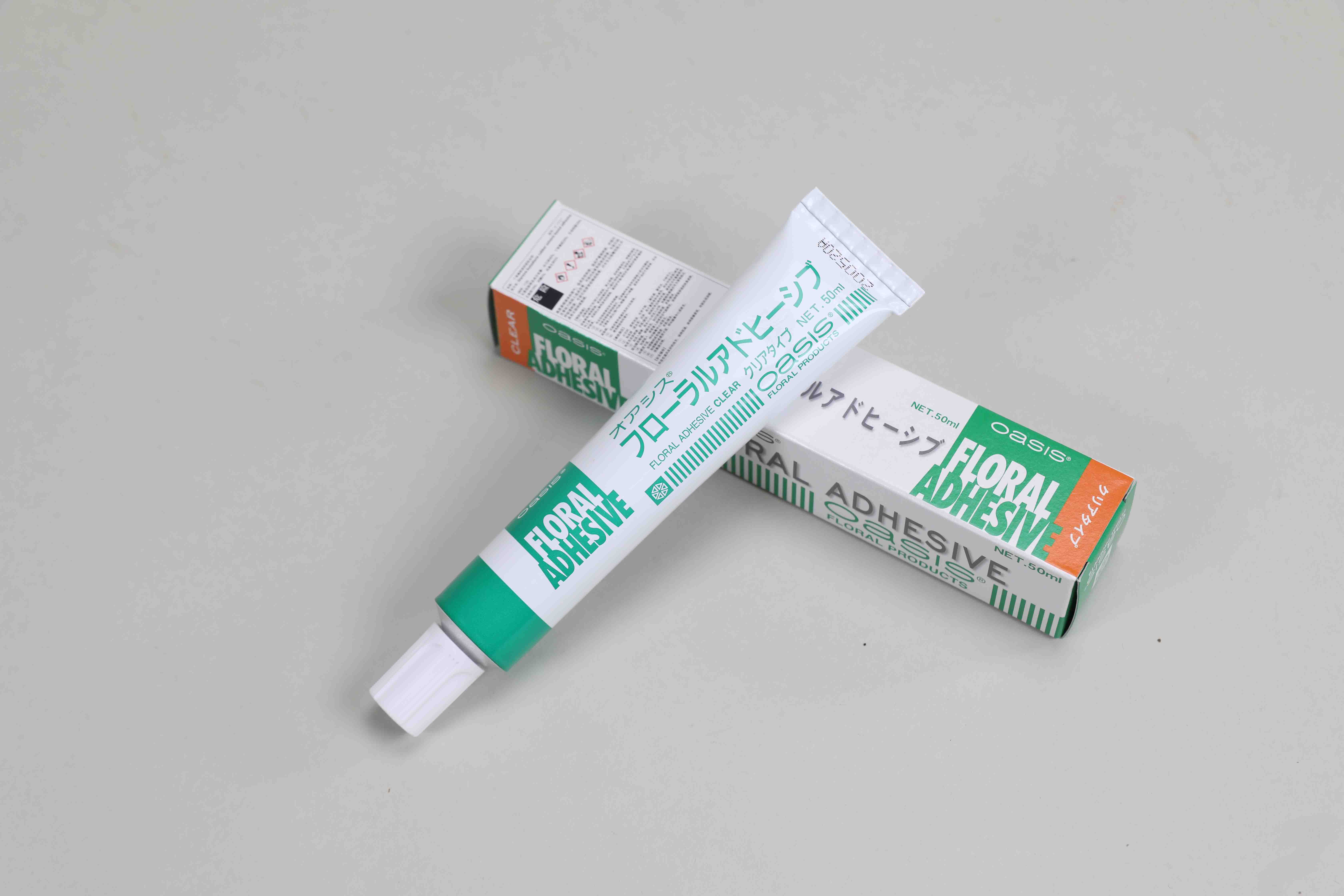 粘性强,无色无味,为花艺专用的鲜花胶水。能够完成各种粘贴技巧,并封存切花根部水分起到保水效果。制作新娘花花首饰等小巧精致的花艺项目时,便将鲜花胶作为花材保水方式,但仅适用于根茎较细的花材,玫瑰等大花鲜花胶对其作用不大。
